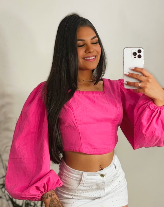 A blusa cropped pink é a peça perfeita para quem ama unir estilo e feminilidade. Com decote quadrado e mangas bufantes de destaque, ela traz um visual moderno e cheio de atitude. O corte cropped valoriza a silhueta e deixa o look mais despojado, ideal para compor desde produções casuais até combinações mais sofisticadas.