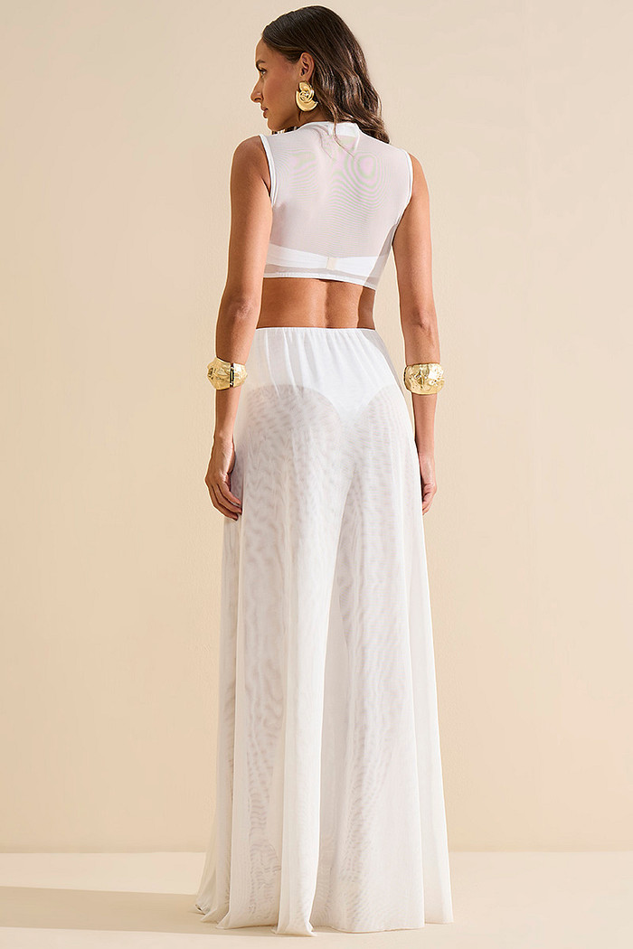 O conjunto saída de praia em tule com biquíni combina elegância e versatilidade em uma produção completa para momentos especiais, apresentando saída de praia com decote em V profundo que valoriza o colo com sofisticação, a amarração frontal estratégica cria recortes sensuais e permite ajuste personalizado, o comprimento longo adiciona elegância atemporal, a fenda lateral oferece movimento fluido, a textura do tule garante leveza e transparência sofisticada, acompanha biquíni top tomara que caia com detalhe central dourado e calcinha hot pants de cintura alta, o conjunto permite infinitas possibilidades de styling desde praia até eventos noturnos.