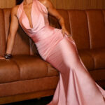 Vestido longo em Jersey, modelagem ajustada, alças finas, decote drapeado, comprimento longo, detalhe franzido nas laterais com faixa fluída. A modelo mede 1,70m e usa P ou PP