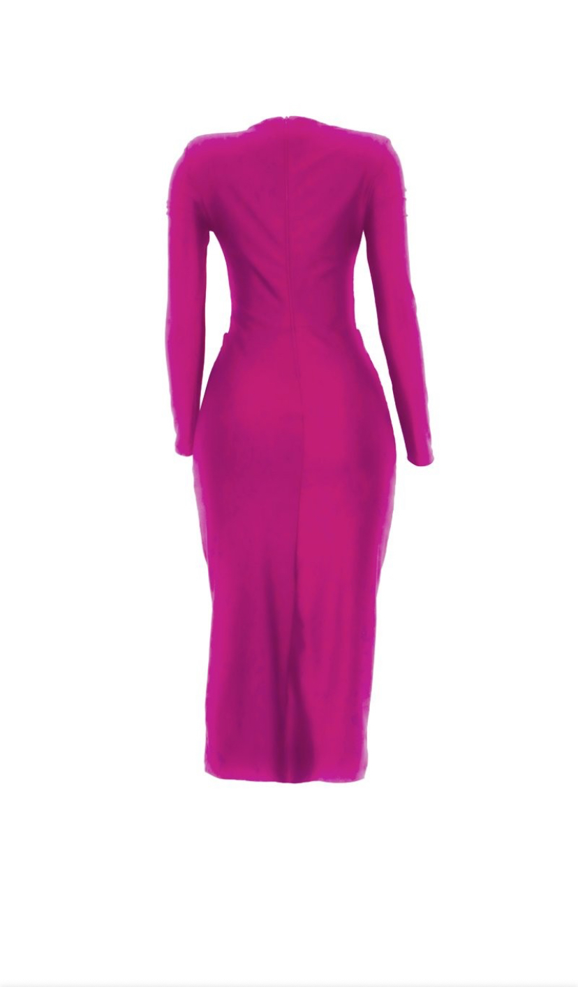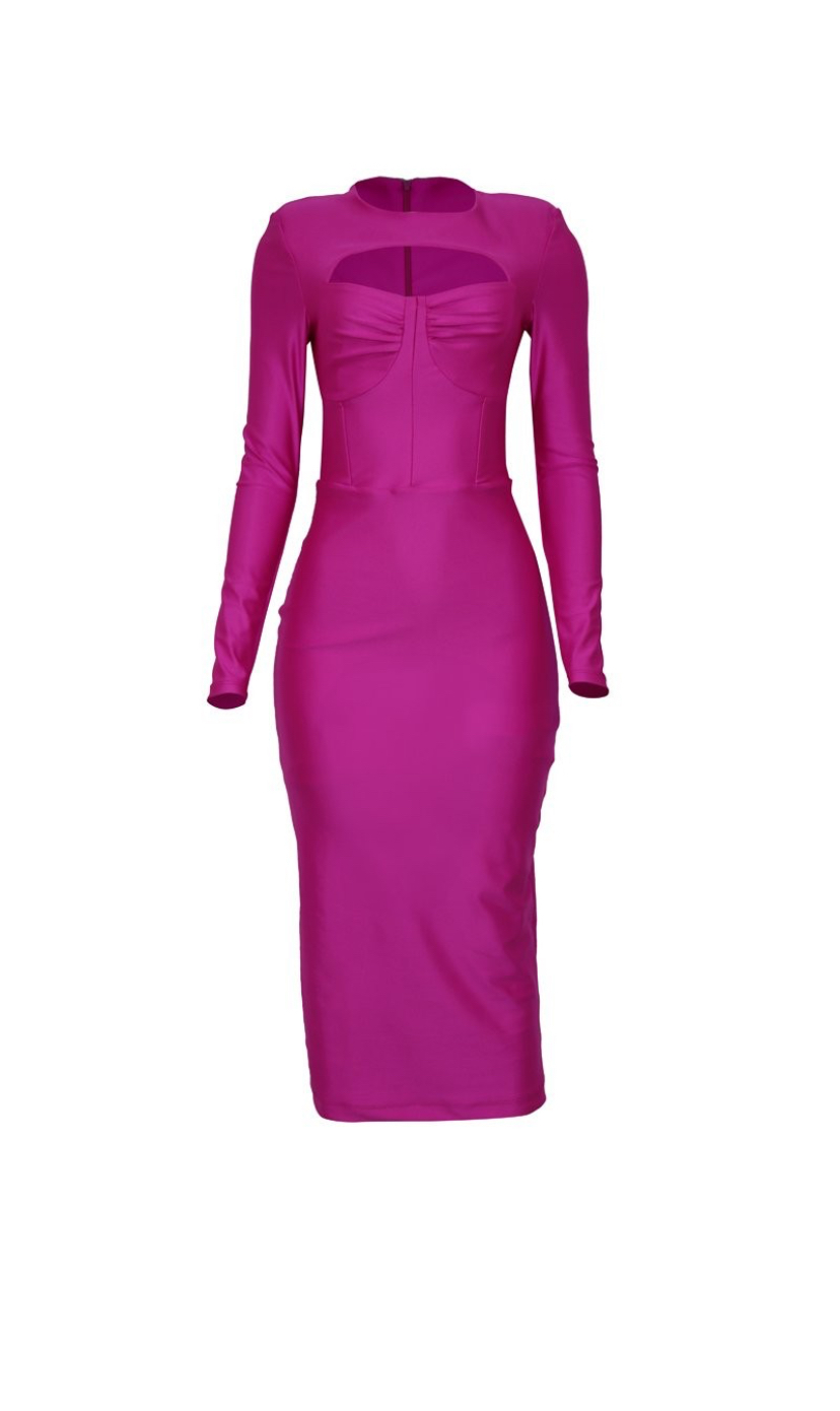 Com uma silhueta midi e um tecido trilobal que valoriza as formas, é a definição de estilo e sofisticação, o decote ousado em combinação com as mangas longas cria um jogo interessante entre exposição e cobertura, enfatizando a figura de maneira lisonjeira, a mistura de poliéster com elastano assegura tanto conforto quanto liberdade de movimento, tornando-o ideal para eventos que exigem um visual elegante e contemporâneo.