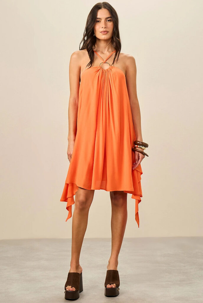 vestido longo em tule semitransparente com estampa exclusiva pucci, frente única com decote em v profundo, amarração ajustável na nuca, parte superior franzida nas laterais criando drapeado, modelagem justa no corpo, costas abertas, saia longa com recorte horizontal franzido na altura do quadril, comprimento longo, caimento fluido e leve.