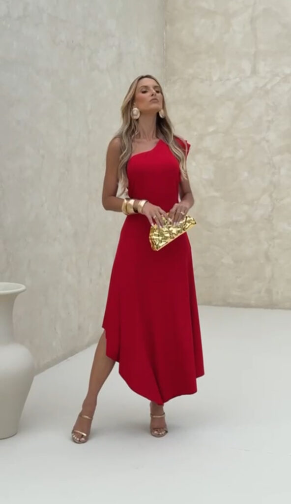 VESTÍDO UM OMBRO SO COM TERMO TODO PEDRARIA